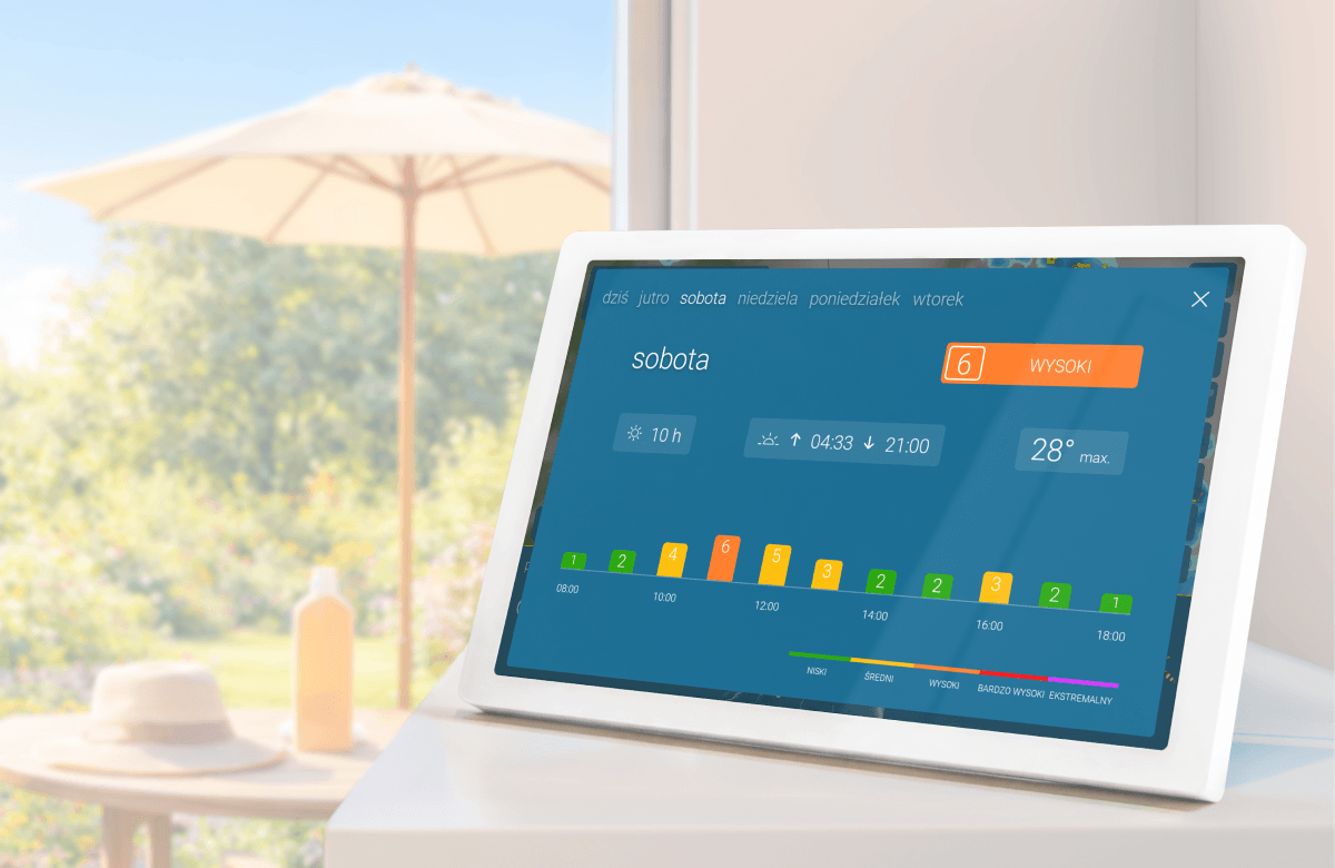 Indeks UV pokazuje, kiedy słońce jest szczególnie intensywne. To praktyczne rozwiązanie dla rodzin, osób aktywnych fizycznie i właścicieli ogrodów. Od razu wiesz, kiedy potrzebna jest ochrona przeciwsłoneczna i kiedy warto zrobić przerwę.