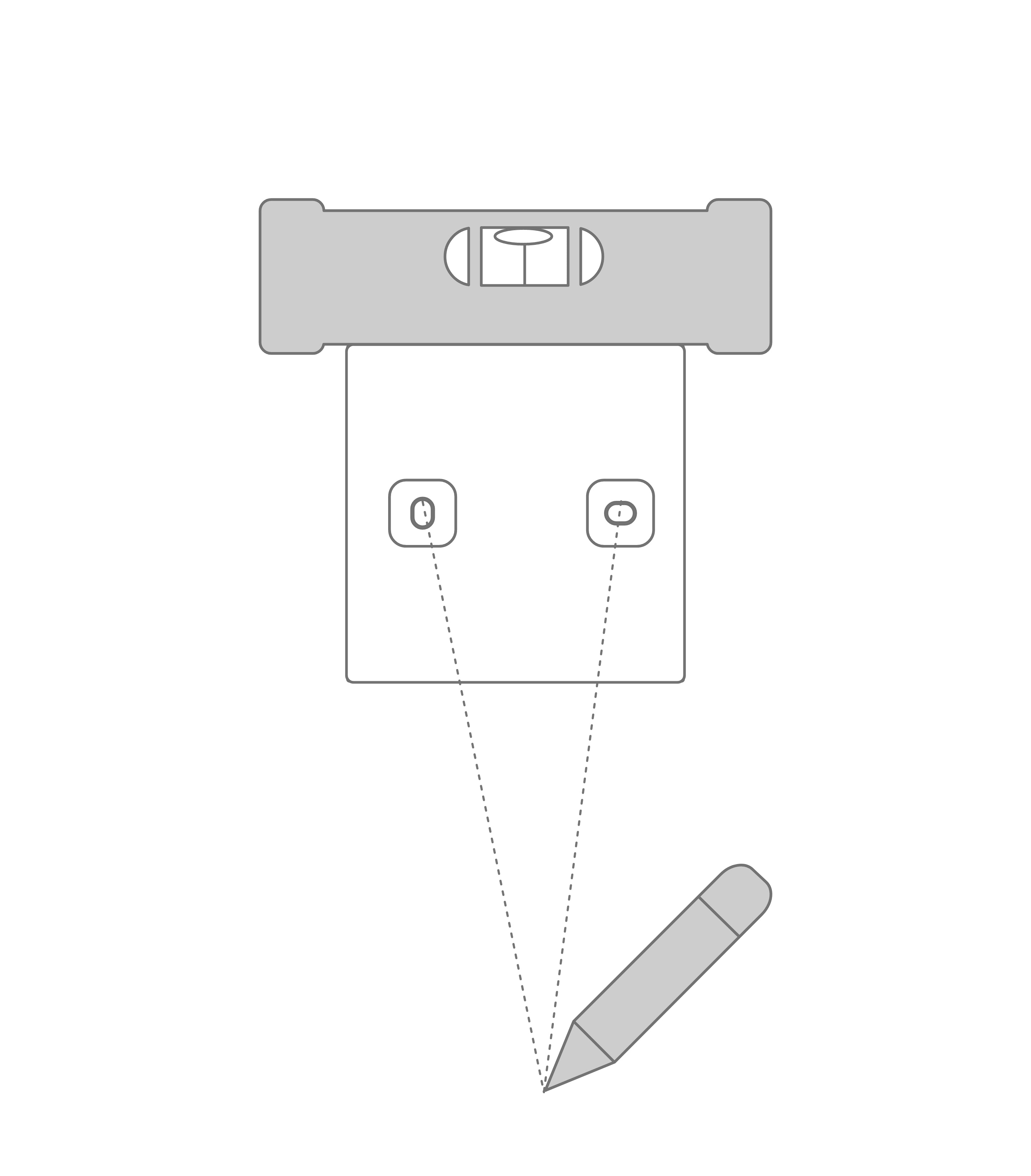 Wandhalterung in der gewünschten Höhe und mithilfe der Wasserwage ausrichten und Bohrlöcher markieren.
