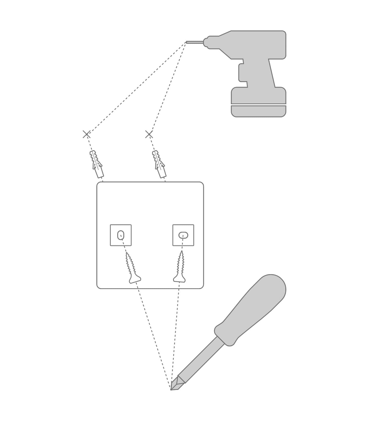 Wywierć otwory, włóż kołki i przymocuj wspornik do ściany za pomocą śrub.