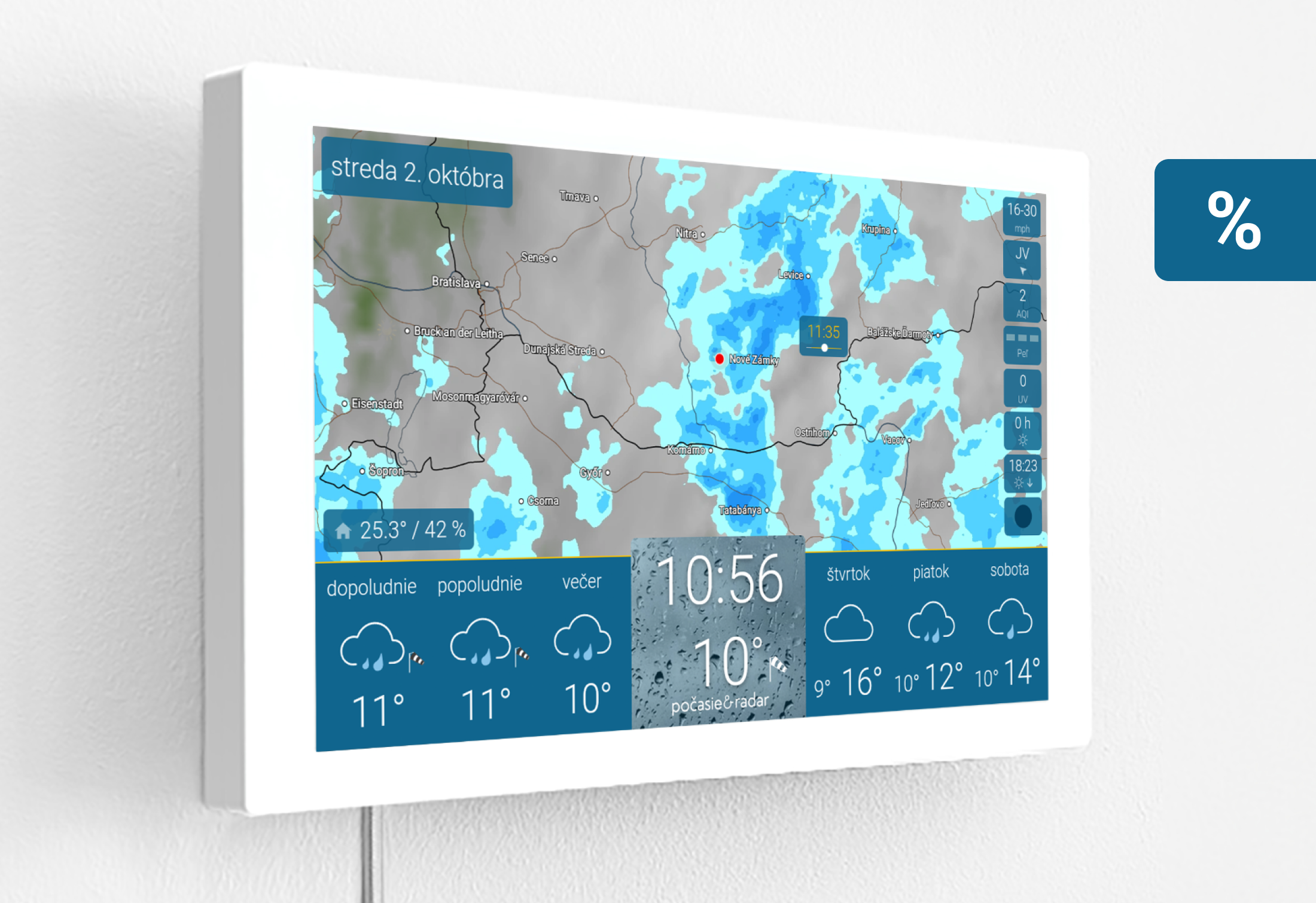 - Počasie na prvý pohľad – vďaka špeciálne vyvinutému nástennému držiaku.